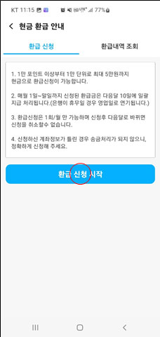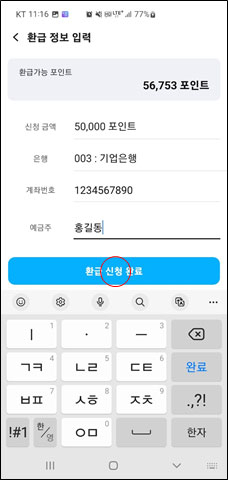 환급 포인트 선택 및 은행,